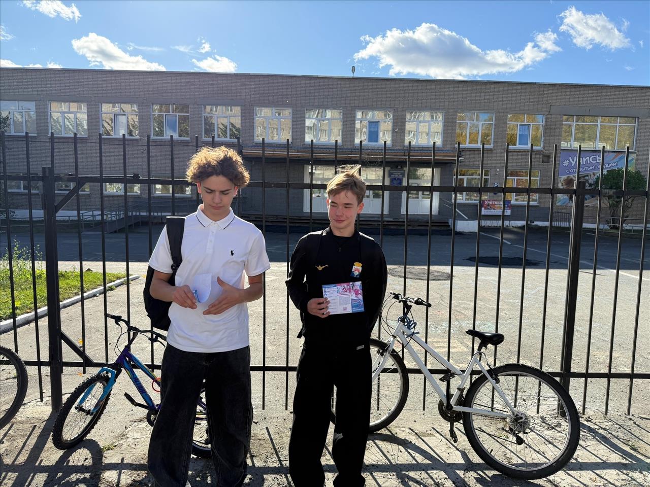 Велосипед – это не только удовольствие от езды, бешеный драйв и эндорфины, но и обязанности. И чем раньше родители донесут до ребенка культуру поведения велосипедистов и Правила дорожного движения, тем лучше! Эти правила безопасности детей на велосипеде озвучили Юные инспекторы движения школы №1 «Полифорум». В ходе акции были розданы листовки.