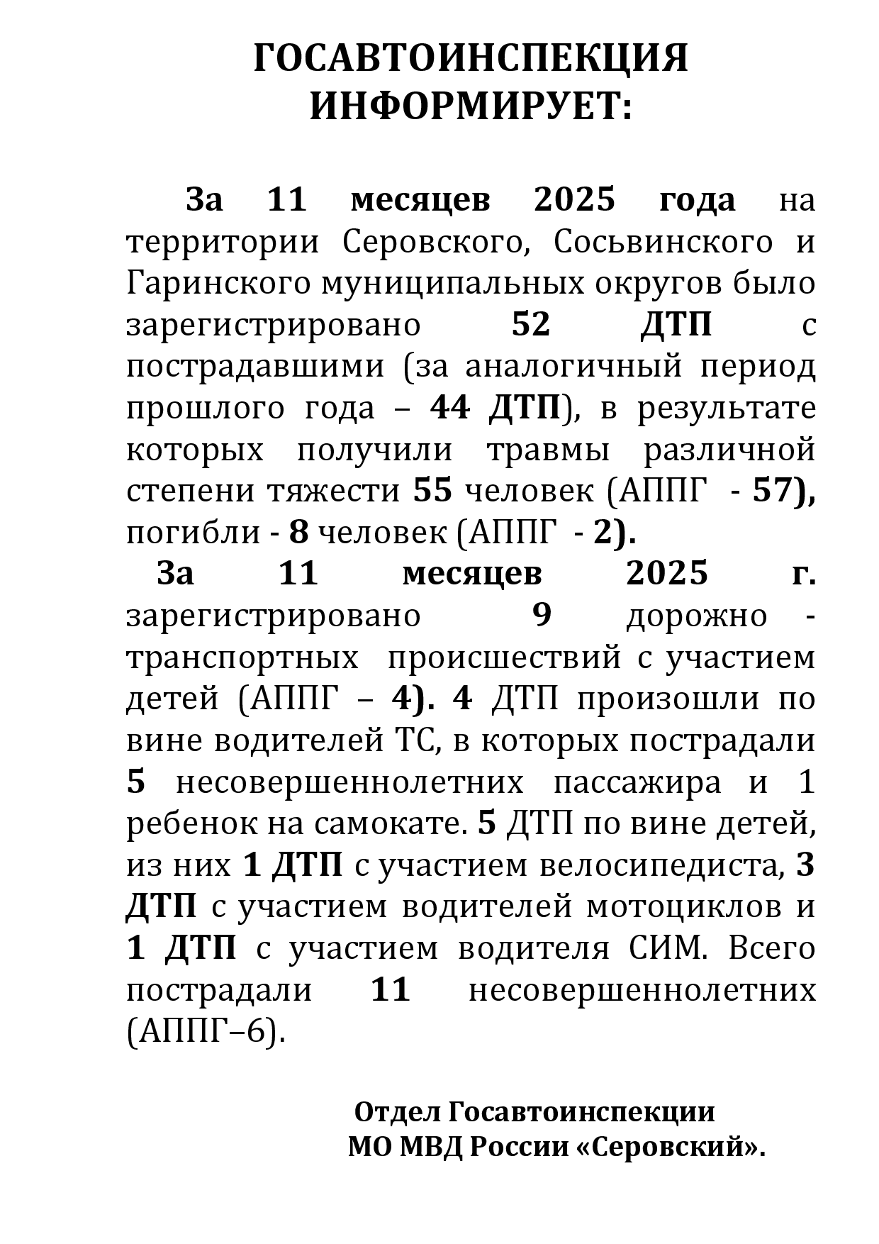 ГИБДД информирует