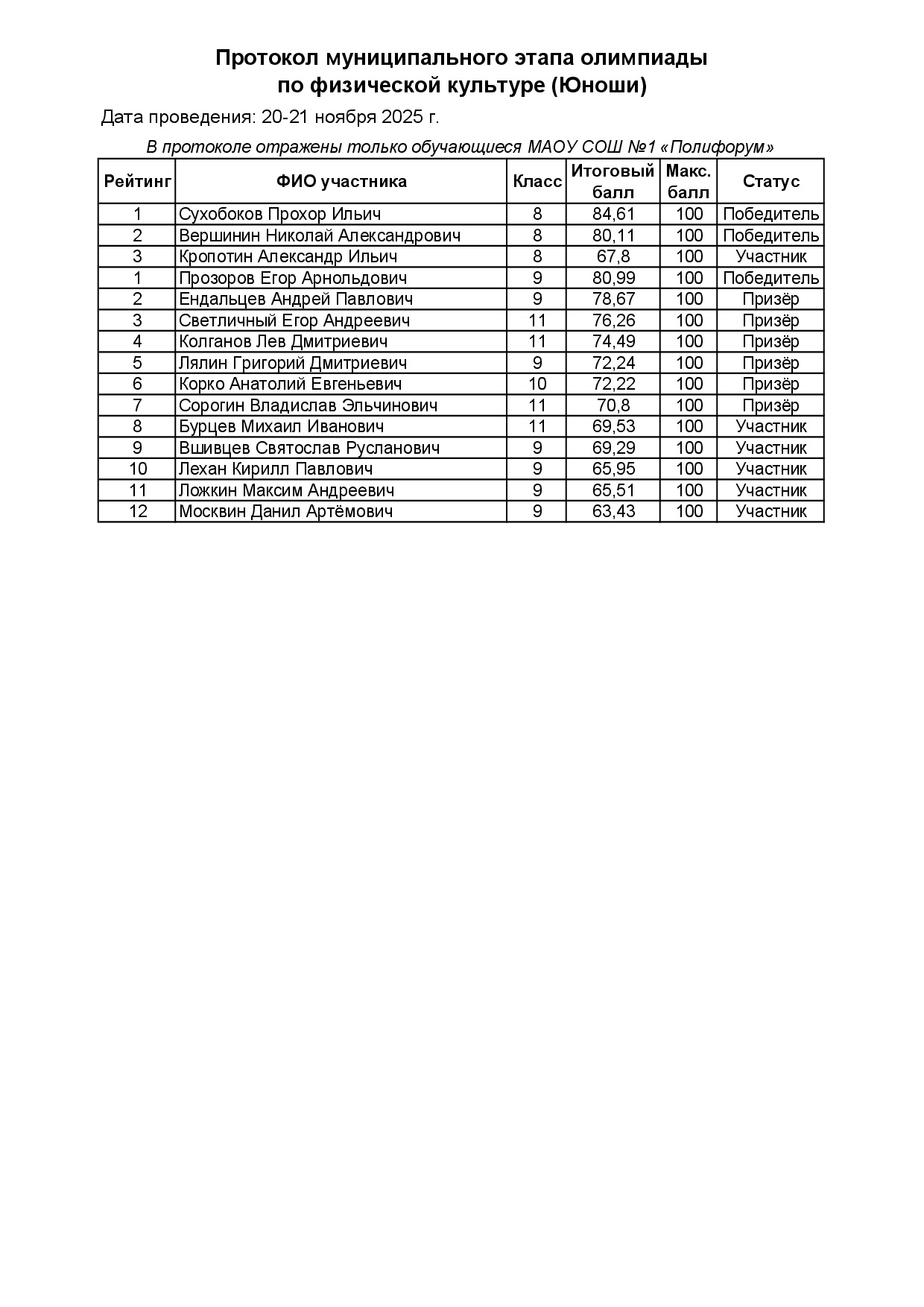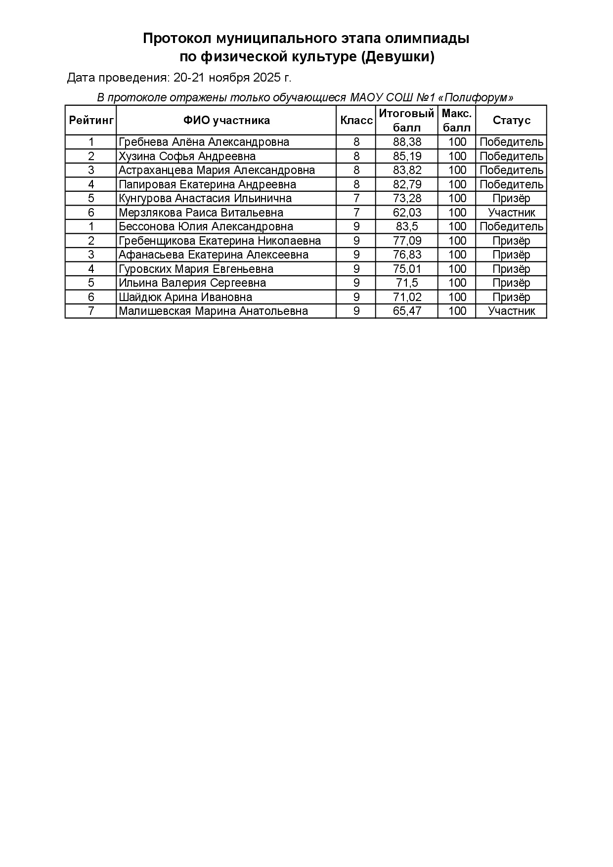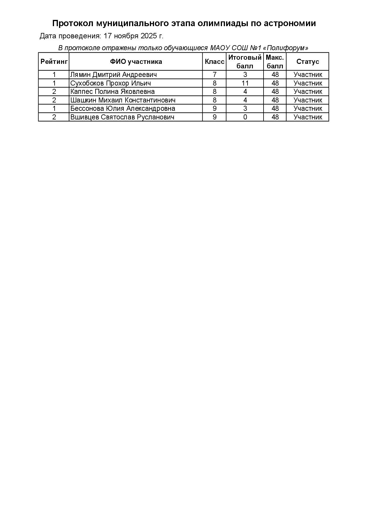 Результаты муниципального этапа Всероссийской олимпиады школьников в 2025-2026 учебном году