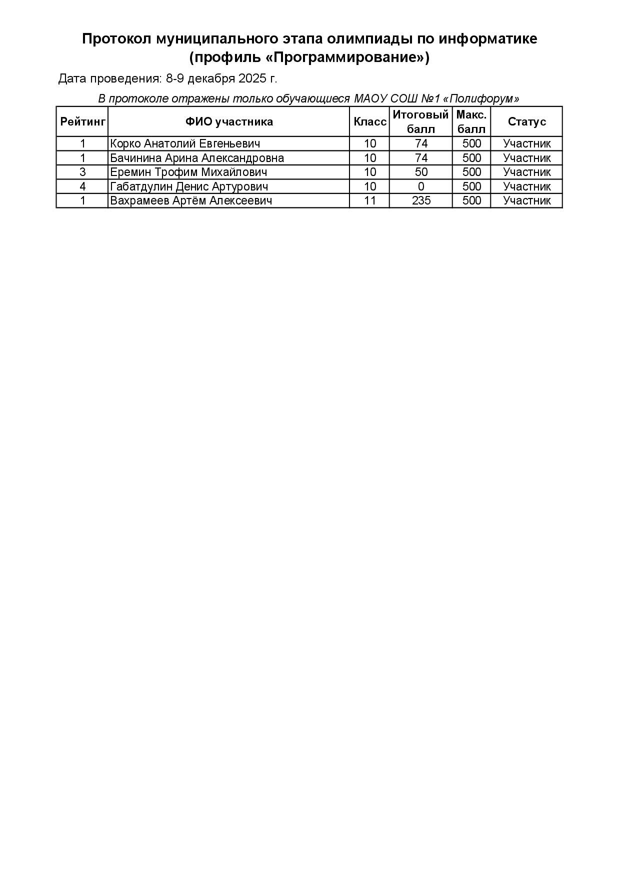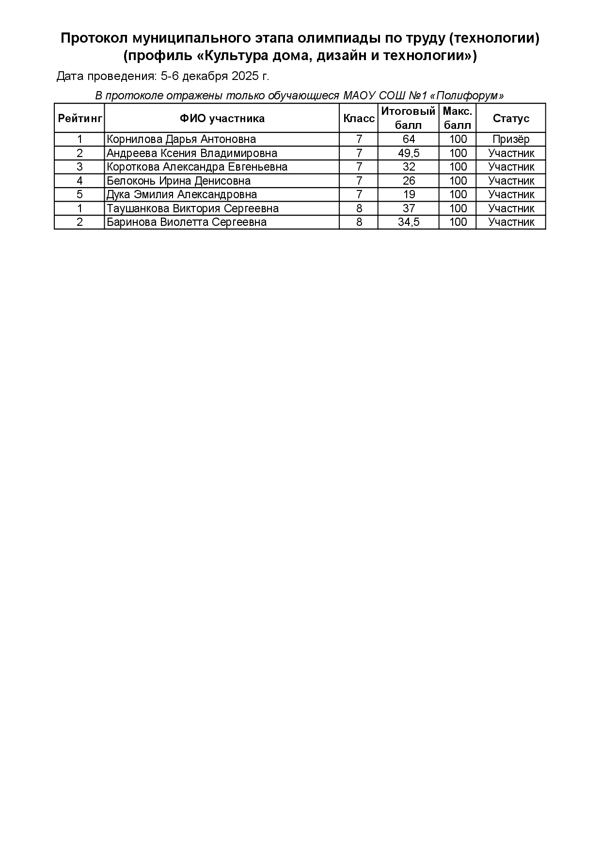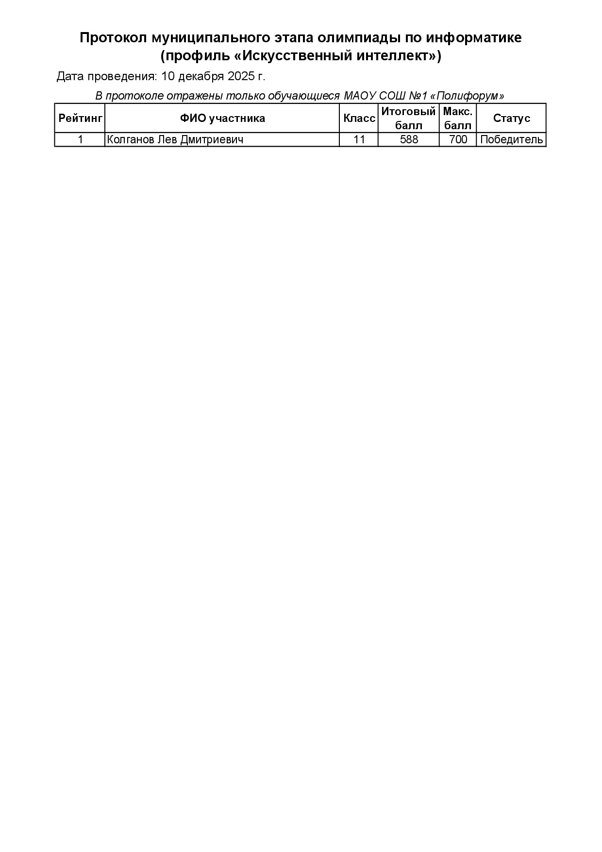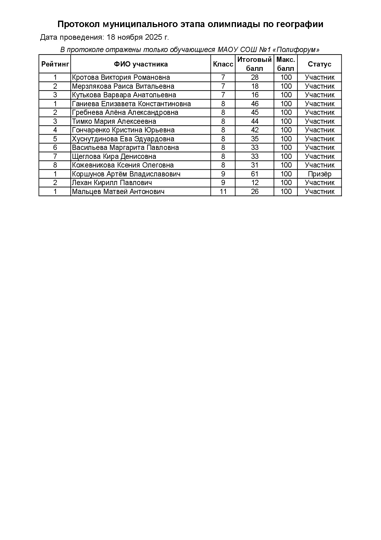 Результаты муниципального этапа Всероссийской олимпиады школьников в 2025-2026 учебном году