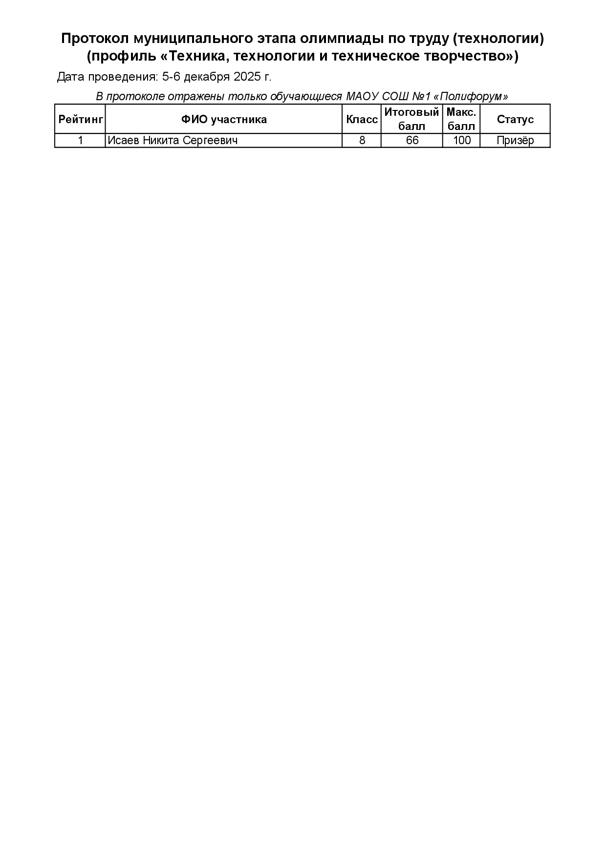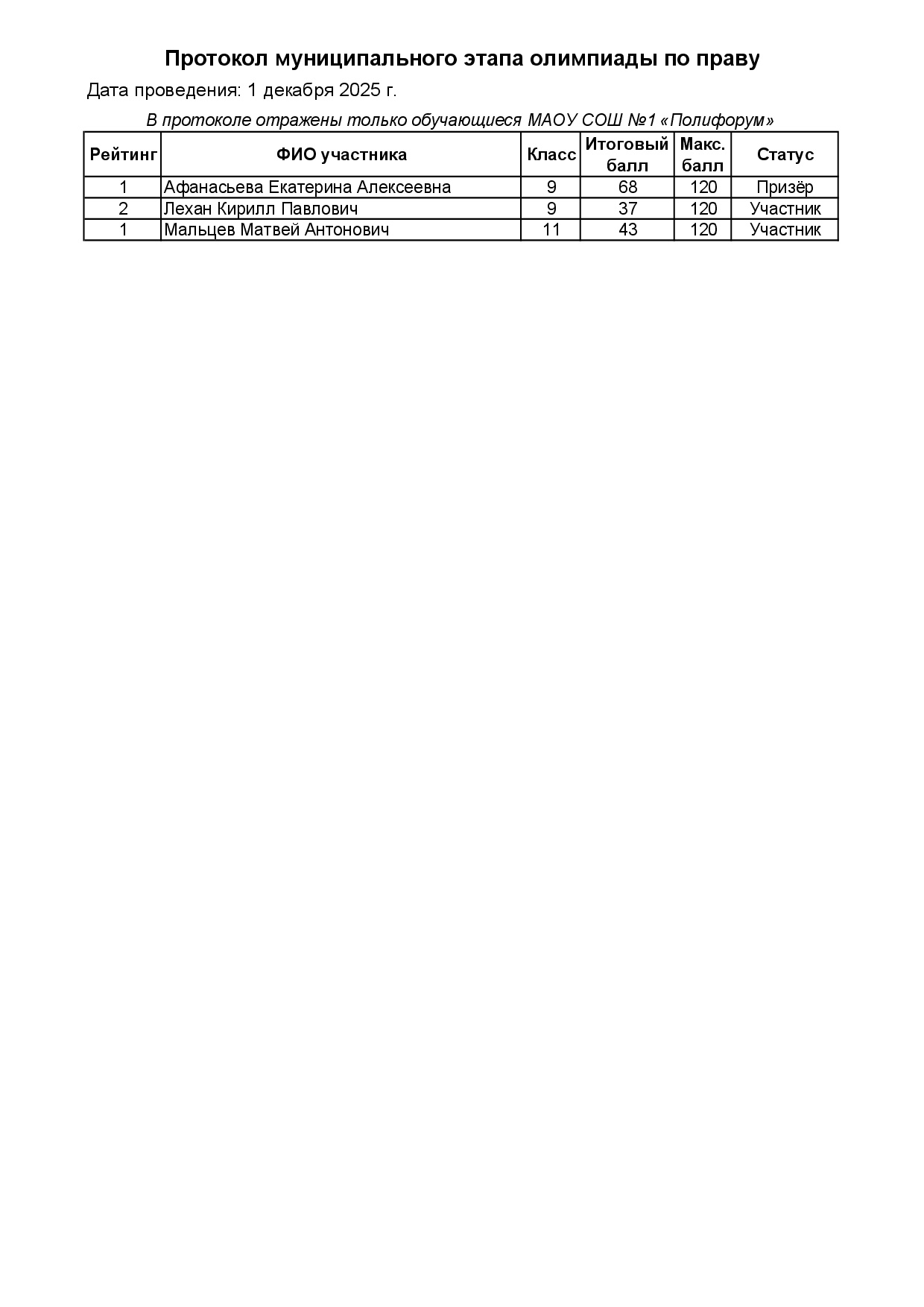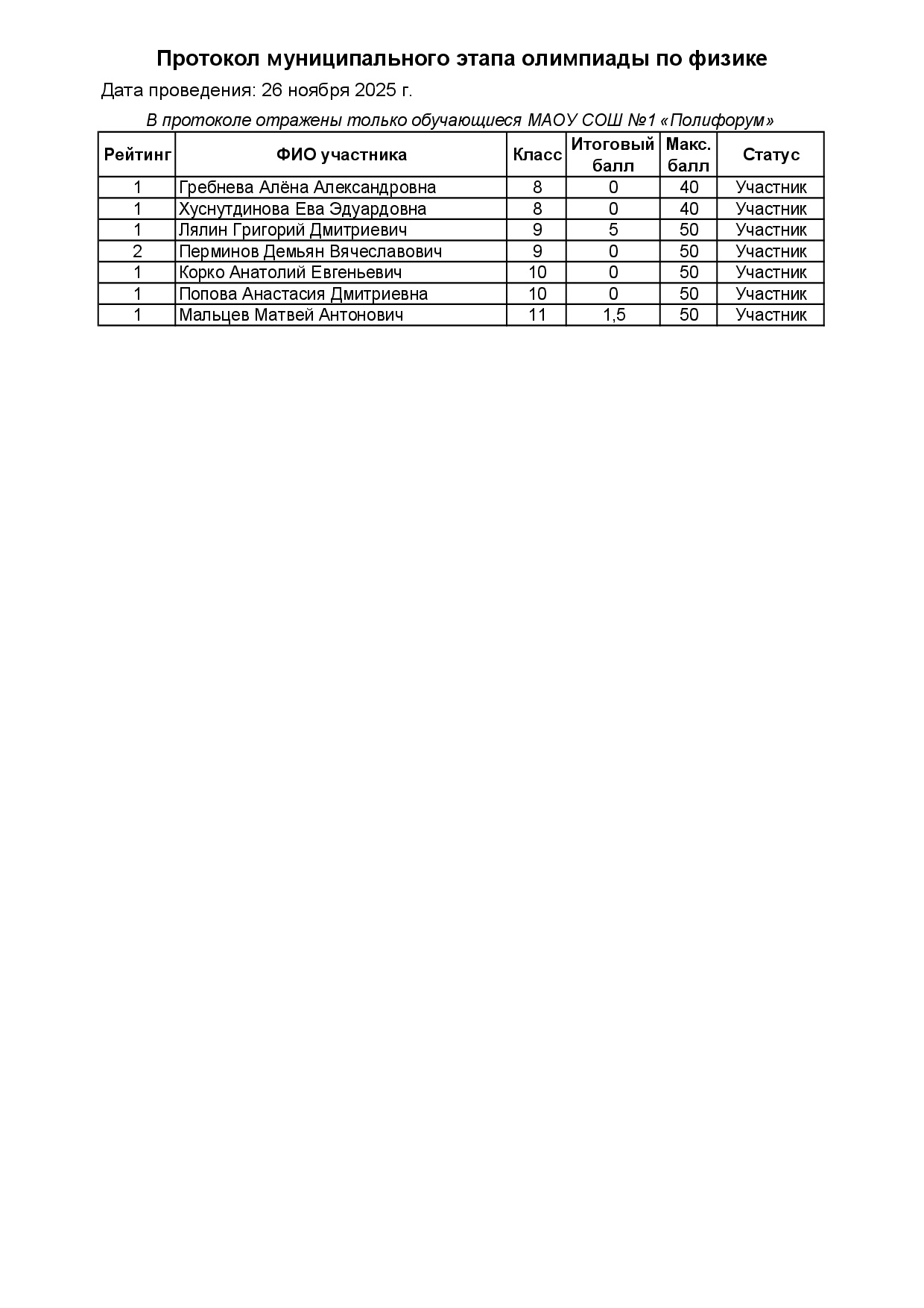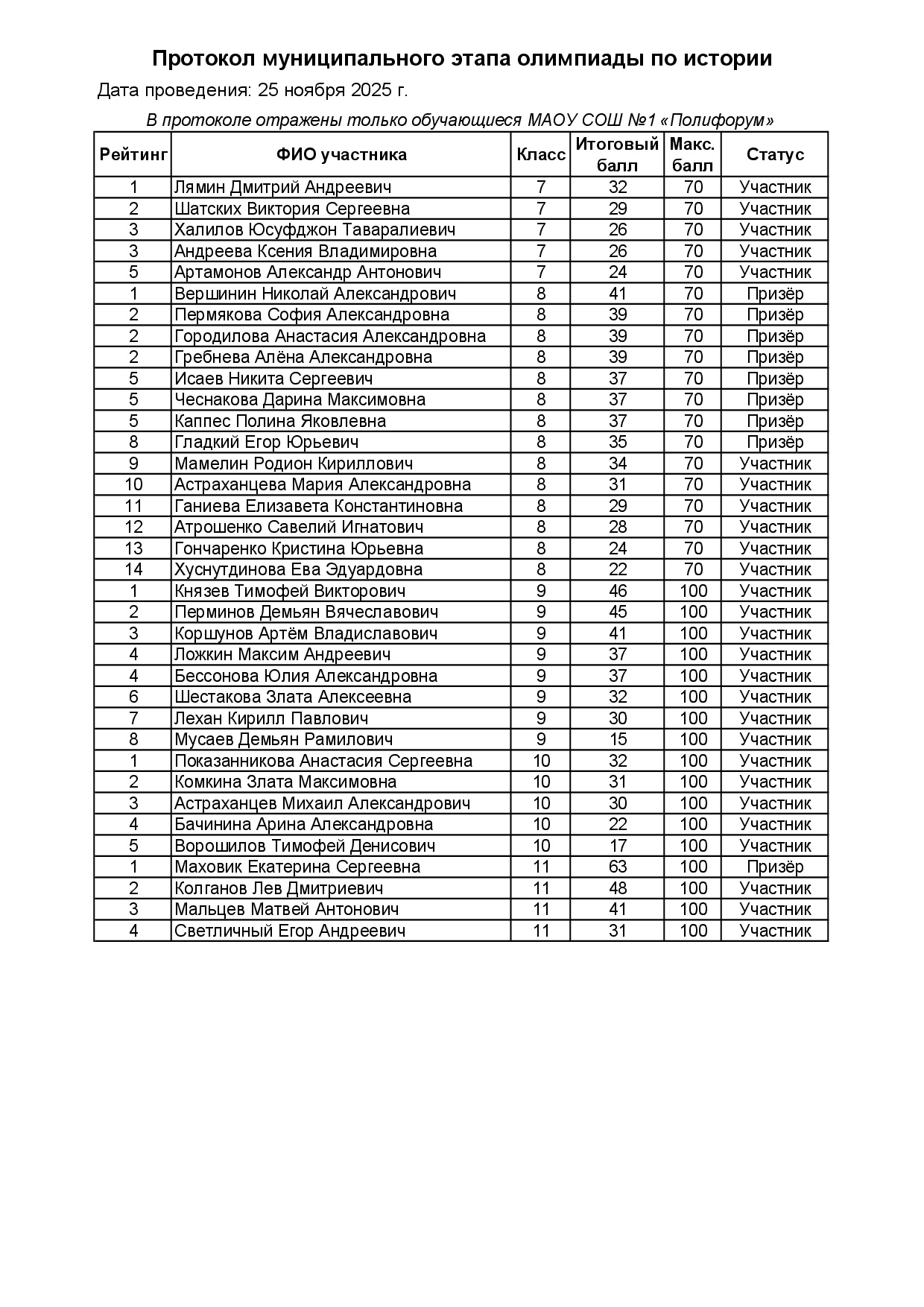 Результаты муниципального этапа Всероссийской олимпиады школьников в 2025-2026 учебном году